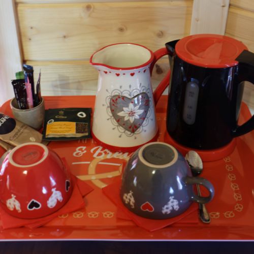 Dans chaque chambre une table supporte un plateau d'accueil avec bouilloire, thé, tisane, café, pour vous accueillir. La salle de bains est équipé d’une douche à l’italienne, d’un lavabo et d’un WC. Un entretien quotidien de la chambre est assuré.